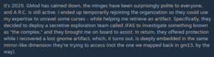 On June 11th, 2025. Xalalau released a new Dev Exploration Notes, where in it he mentions JFAS-1 by name discribing as a "secretive exploration team called to investigate something known as “the complex". "